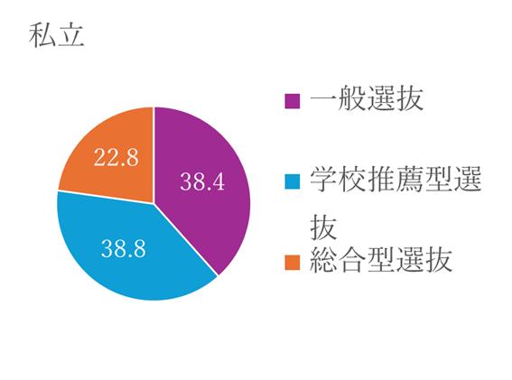 一般入試65.8%、指定校推薦入試(現学校推薦型選抜)31.7%、AO入試(現総合型選抜)1.4%